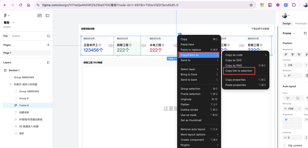 我把设计稿里的一个部分的图层按照官网教程复制了选区对应的link地址