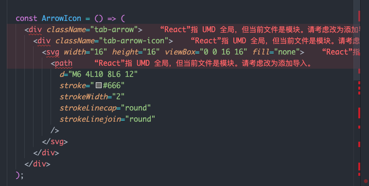 文件拷贝到项目文件夹下,发现有React相关提示,组件在最开始未引入React,加上React引入后错误提示消失