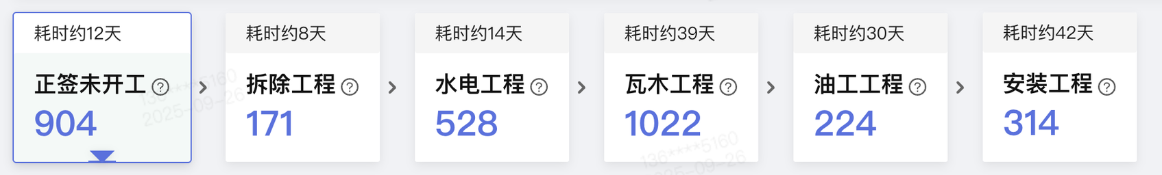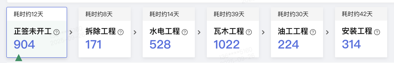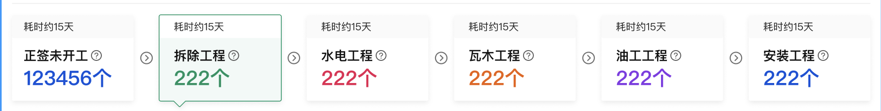中间阶段之间的右箭头未增加圆形边框,且水平方向上不居中